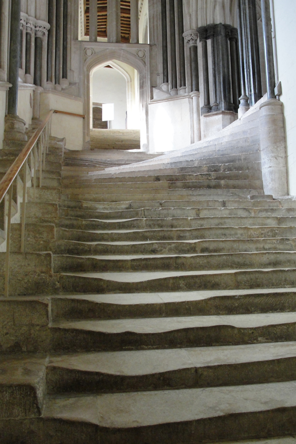 Re: Challenge 10/2016 • Schau nach oben!Eines romanischen Kapitelle in der Kathedrale von Wells. Blick die Treppe hinauf zum Kapitelsaal und die einzelne Säule, die das Gewölbe des Raums stützt.