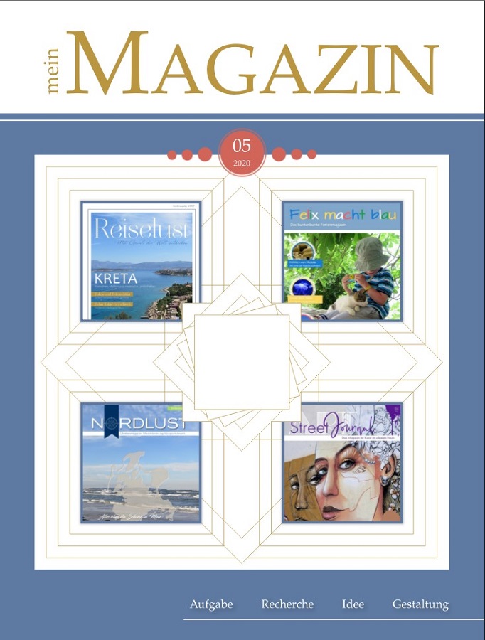 Da ich alle Ideen, die mir gerade so durch den Kopf geistern, gern sammeln möchte, dachte ich mir, ich gestalte zum Ende der Aufgabe einfach ein Magazin-Magazin.