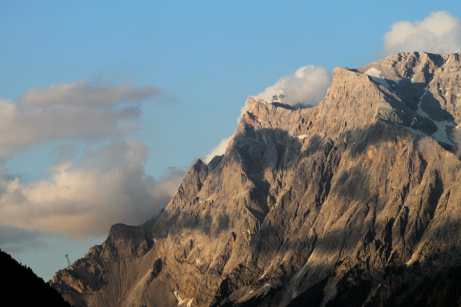 Die Aufnahmen wurden vom Restaurant "Zugspitzblick" geschossen und zeigen die Zugspitze am Abend. (Wir waren dort, um die Johannisfeuer anzusehen - bei vollkommener Dunkelheit werden an den Berghängen Symbole mit Fackeln gezaubert - es sieht gigantisch aus) Das zweite Bild zeigt den Berg (weiß nicht, wie er heißt) auf der anderen Seite. Liebe Grüße