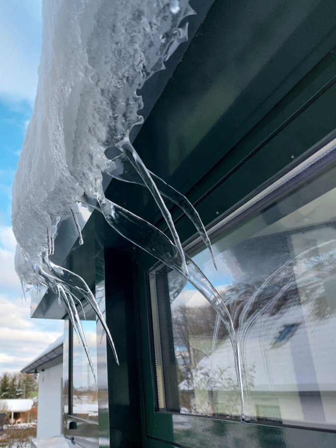 Re: Alles neu macht der Mai - und wir machen eine neue Foto-ChallengeSpiegelungen gehören zu meinen Lieblingsmotiven, hier eine Aufnahme aus dem vergangenen Winter, wo sich die Eiszapfen und unser Nachbarhaus im Wintergartenfenster spiegeln.
