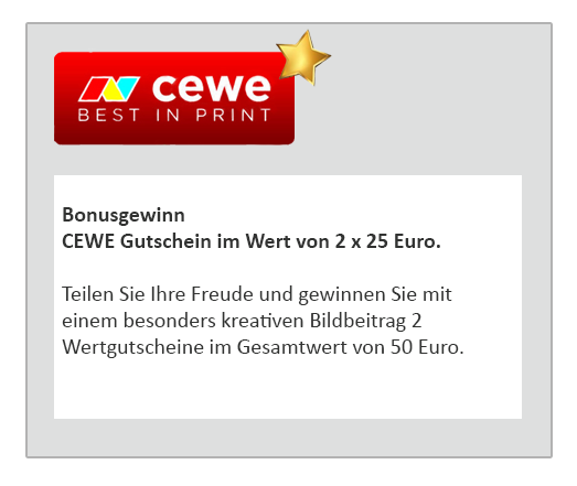 Wir laden Sie herzlich ein, die neue CEWE Community mit integriertem Forum zu entdecken und künftig zu nutzen. Das bisherige Forum, in dem Sie sich gerade befinden, steht nur noch bis Ende 2025 für neue Beiträge zur Verfügung und wird ab dem kommenden Jahr 2026 nur noch lesend zugänglich sein. Informieren und registrieren Sie sich jetzt in der neuen CEWE Community – wir freuen uns auf Sie! Challenge 01/2018 • Festgehalten!Liebe Forenteilnehmer,