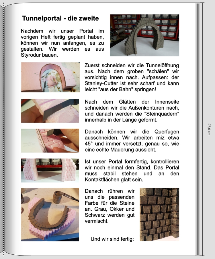 Es handelt sich um eine Modellbauzeitschrift. Wir bauen ein Tunneportal in einer "Artikelserie". Im "vorigen Heft" haben wir das Portal geplant und gezeichnet. In diesem Heft wird es "fortgesetzt" und der Bau beschrieben. Hier nun unser Deckblatt: Wenigstens bin ich der erste LG Old Nat, der Dino