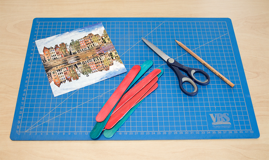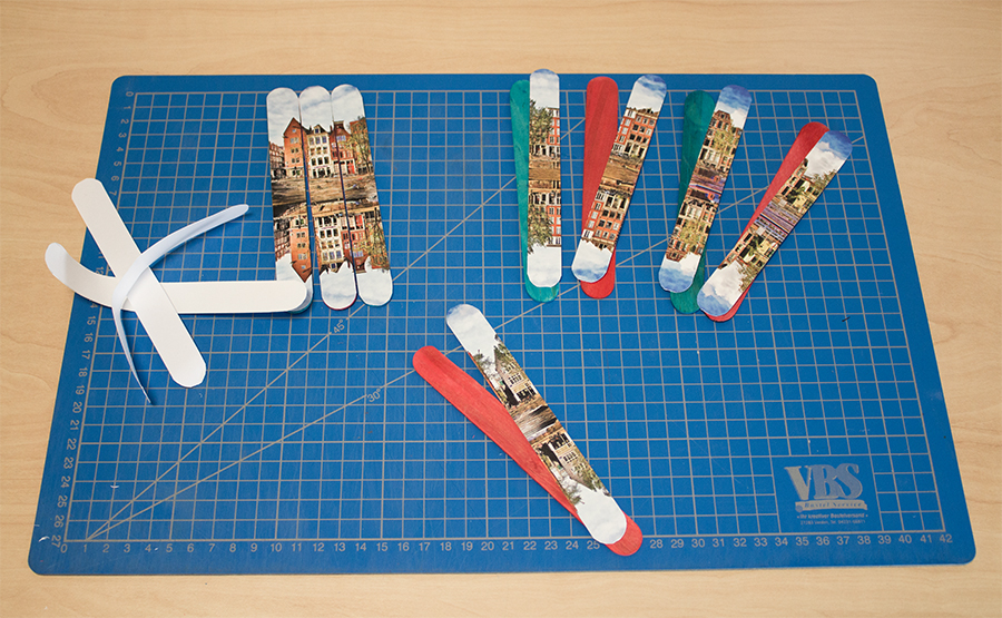1. Schritt: Fotoprodukt erstellen Zunächst suchen Sie sich ein thematisch passendes Foto heraus. Unser Gutschein lädt zu einem Wochenende nach Groningen ein, daher haben wir ein tolles Bild der Stadt ausgewählt. Diese Aufnahme haben wir uns zum einen als selbstklebendes Poster bestellt und zum anderen als Sofortfoto an der CEWE FOTOSTATION ausgedruckt. Tipp: Das selbstklebende Poster eignet sich besonders gut, wenn Sie mehrere Gutscheine am Stiel erstellen wollen. Aufgrund der vorgegebenen Maße haben wir gleich vier Aufnahmen auf einem Bogen platziert.2. Schritt: Zuschneiden Nun nehmen Sie einen Holzstiel als Schablone und zeichnen auf die Rückseite der Aufnahme den Stielumriss auf. Wir haben in beiden Fällen Bilder im 15x15cm Format benutzt und es passten acht Umrisse nebeneinander. Die Anzahl variiert natürlich mit der Breite des Holzstiels. Anschließend schneiden Sie die Formen mit einer Schere einfach aus. 3. Schritt: Aufkleben Das selbstklebende Poster kann nun einfach auf die einzelnen Holzstiele aufgeklebt werden. Dazu muss nur die Papierfolie abgezogen werden und die kleberige Seite auf den Stiel gedrückt werden. Beim Sofortfoto muss zunächst ein Kleber auf die Stiele aufgetragen werden und dann wird das Foto platziert. Wir haben es einfach mit einem handelsüblichen Klebestift ausprobiert und das Foto hält super. Auf der Rückseite der Stiele können Sie nun Ihren Gutschein in Worte fassen. Dabei ist zu beachten, dass Sie die Stiele in richtiger Reihenfolge umdrehen. Sodass nach dem Zusammenpuzzeln die Nachricht lesbar ist. Tipp: Stecken Sie die Stiele in ein mit sand- oder muschelngefülltes Kästchen. Alternativ können die Stiele ganz einfach mit einem Geschenkband zusammengebunden werden. In dieser Form ist die Verwundern beim Beschenkten besonders groß und die Auflösung umso schöner.Wie finden Sie unsere kleine Bastelidee? Teilen Sie gern Ihre Meinung mit uns. Re: Foto am Stiel – Ein etwas anderer GeschenkgutscheinIch finde die Idee super!