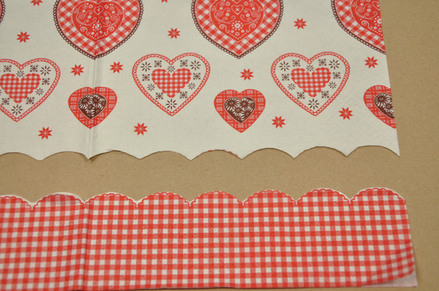 Sie entfalten eine beliebige Serviette und scheiden das gewünschte Muster aus, welches Sie gerne auf der Box hätten.