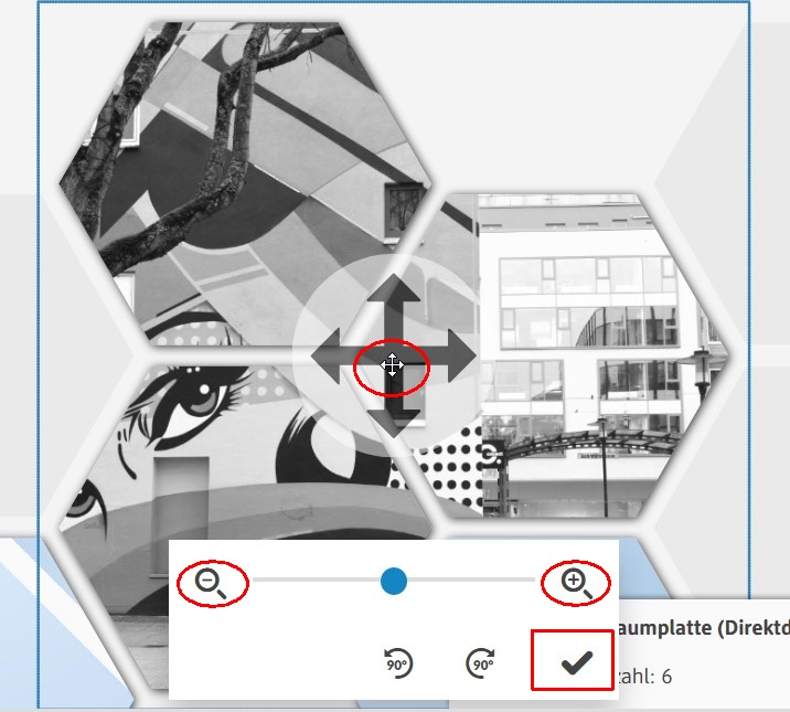 Urlaubsfan Re: hexxas! Individuell, flexibel und modernBin eben dabei Hexxas zu gestalten. Die Vergrößerung oder Verkleinerung der Fotos in den Hexxas ist nicht sehr komfortabel. Man muß unter "zuschneiden" gehen, aber dann sieht man nicht mehr das Hexxa sondern nur einen rechteckigen Rahmen. Also muß ich blind die Größe ändern (hat aber mit zuschneiden nichts zu tun) auf ok gehen um das Resultat zu sehen. Wäre es nicht möglich, wie bei den Fotobüchern, die Fotos mit Anfassern im Hexxa zu verändern?
