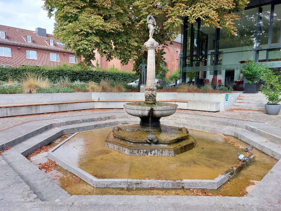 Re: Foto-Aufgabe August: Kühles NassViel kühles Nass spendet dieser Brunnen nicht, den Tauben scheint es aber zu reichen.