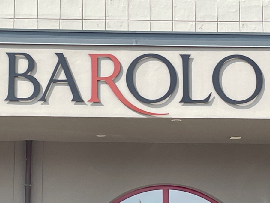 Silber-Distel Re: Foto-Aufgabe September: ABC - Typografie, die auffälltVon Asti einige Kilometer weiter nach Süden kommt man nach Barolo, das für seinen Wein berühmt ist und der dort überall ausgeschenkt und verkauft wird. Dieser Schriftzug mit einer zwar schönen harmonischen, aber eher unspektakulären Serifen-Schrift wird durch das „R“ zum Hingucker.