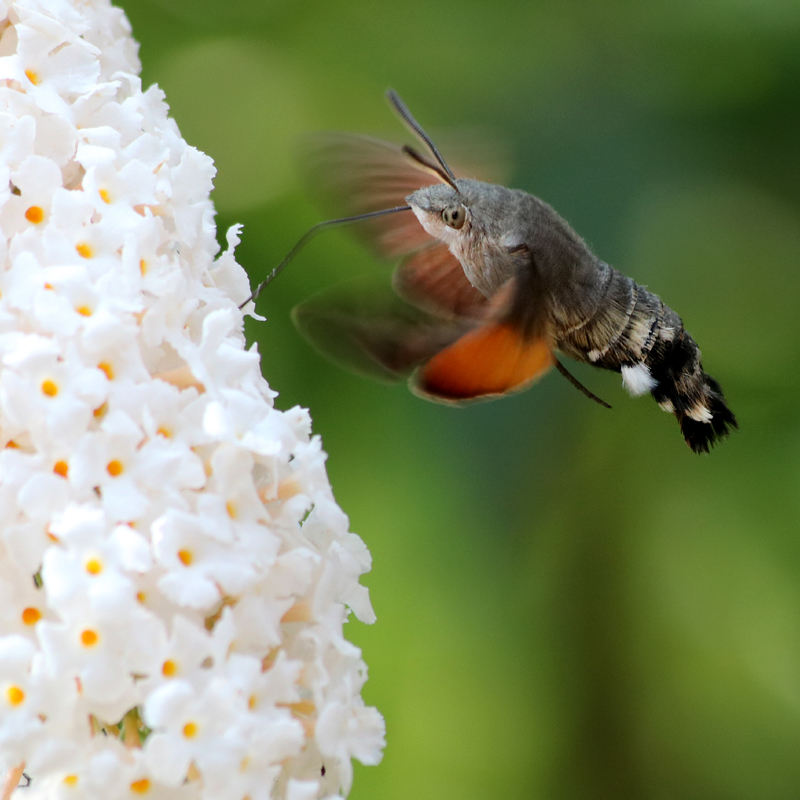 Re: Challenge 01/2018 • Festgehalten!Dieses Jahr haben wir uns sehr gefreut, wie gerne unser neuer Sommerflieder von verschiedenen Schmetterlingen angenommen wurde. Eines der interessantesten dieser Tiere ist für mich das Taubenschwänzchen. Der "Kolibri" unter den Schmetterlingen hat eine Schlagfrequenz 70 - 90 Flügelschlägen in der Sekunde und er ist bis zu 80 km/h schnell.