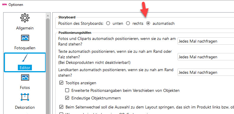 Thank you for answering me. I really am a little "desperate". I only use one monitor. I have tried to change position of the storyboard and only when I choose "Unter" I cansee the storyboard. Is it possible to change the size of the "working area" because I think the problem is that it is too big and therefore I can't see the right side? It is difficult in English - hope you understand most of it? Kind regards