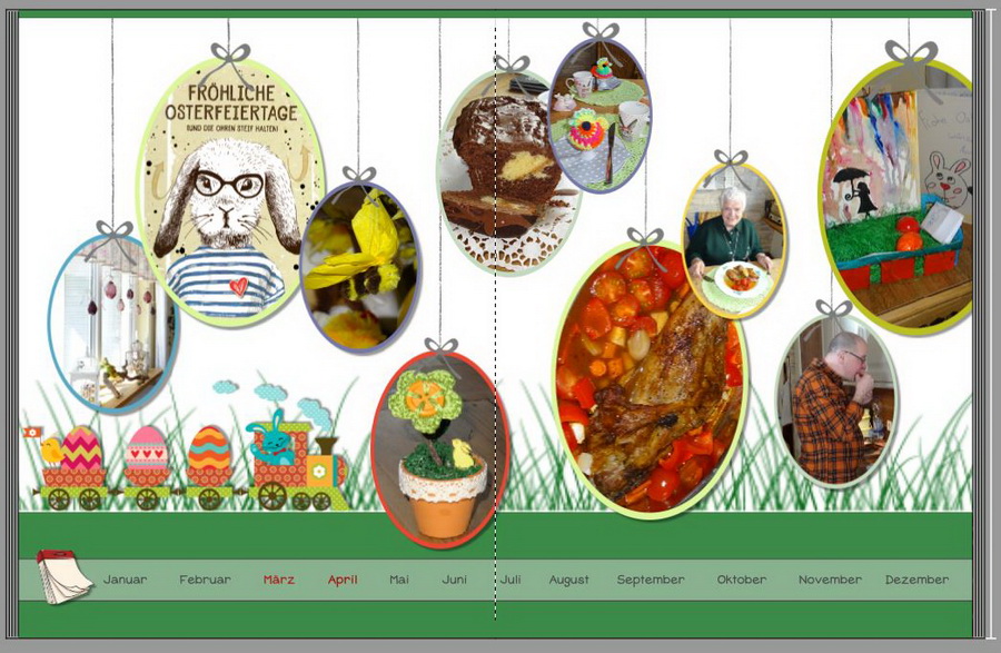 Wir laden Sie herzlich ein, die neue CEWE Community mit integriertem Forum zu entdecken und künftig zu nutzen. Das bisherige Forum, in dem Sie sich gerade befinden, steht nur noch bis Ende 2025 für neue Beiträge zur Verfügung und wird ab dem kommenden Jahr 2026 nur noch lesend zugänglich sein. Informieren und registrieren Sie sich jetzt in der neuen CEWE Community – wir freuen uns auf Sie! Kommt, wir feiern Ostern!Seit Karfreitag bastele ich an dieser Seite, ich wollte die Idee unbedingt durchsetzen, jedoch hat sie mich fast in den kreativen Wahnsinn getrieben