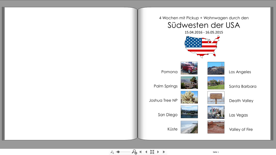 danke für den Tipp mit der Schräge, das werde ich meiner Layout-Sammlung einverleiben. Der neue Entwurf gefällt mit gut, auch dass das Blau als Streifen nochmal vorkommt. Auf Deiner ersten Innenseite hast Du mit den 4 Wochen und dem Datum eine Dopplung. Ich würde "Mit dem Pickup und Wohnwagen durch den" schreiben. Viele Grüße Nessie Re: Kreative BlockadeBeim Datum hast du dich vertippt "15.04.2016 - 16.05.2015"
