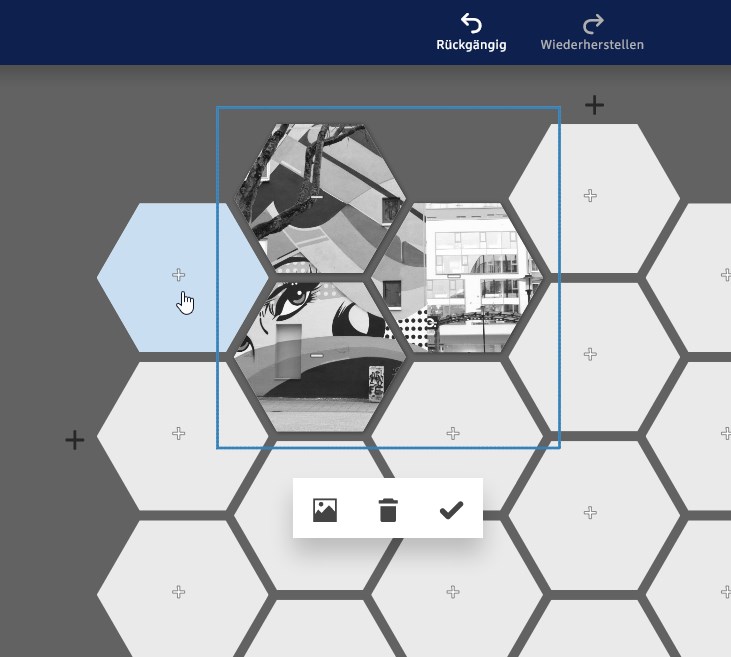 hat geschrieben: Wieder anders ist es zum Beispiel bei dm Deutschland. Der Editor sieht schön modern aus, ist aber überhaupt nicht intuitiv zu bedienen. Dort habe ich es zum Beispiel noch nicht geschafft, ein Bild auf mehrere hexxas zu verteilen.