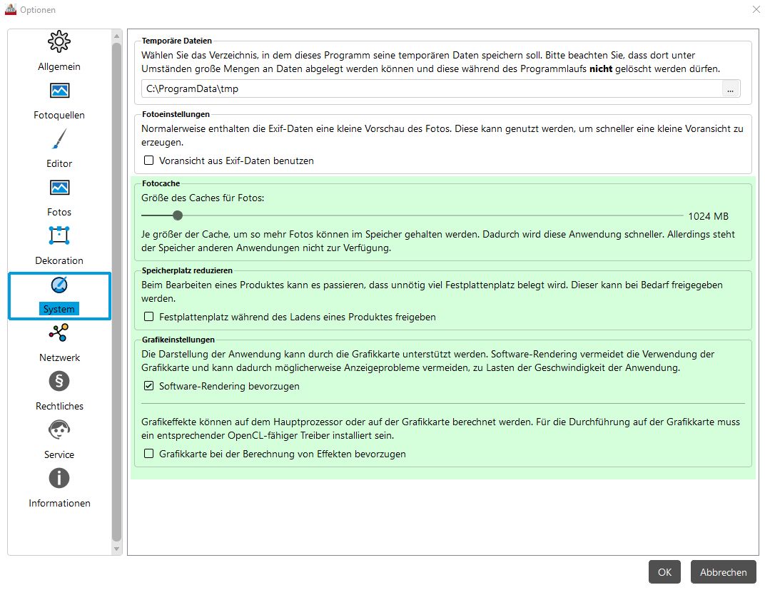Re: Programm reagiert sehr schwerfälligReisetante hat geschrieben: Wie sehen denn die Einstellungen zum Cache unter Optionen/System aus? Evtl. hat sich da der Schieber auf ganz links verstellt beim Update?
