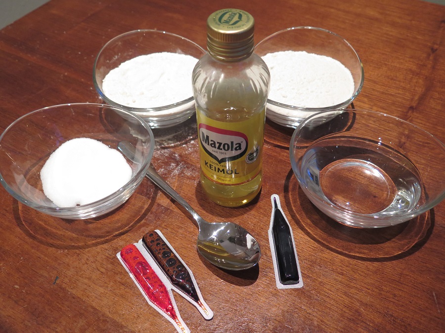 2 Tassen Mehl, 1/4 Tasse Salz, 1/2 Tasse Wasser, 1 EL Speiseöl, Ostereierfarbe, vermische und verknete alles gut, und schon ist die Kinderknete aus eigener Herstellung fertig! Mit ein bisschen Übung lässt sich daraus sogar ein Sonntagsfrühstück für Mama und Papa zaubern... Liebe Grüße