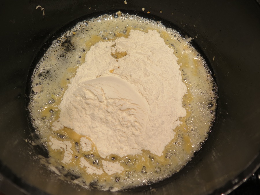Klassisch für die Saucenbasis: Eine Mehlschwitze. Und jetzt fix den Schneebesen schnappen, sonst gibt es Klümpchen... Liebe Grüße