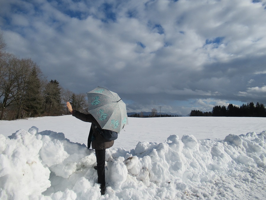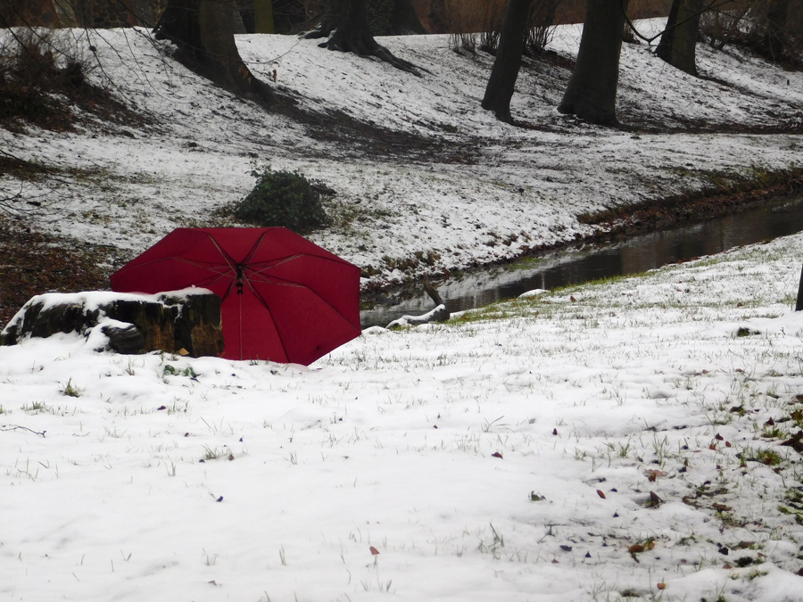 das tun auch Schirme an den Mützen Re: Challenge 02/2019 • I'm singing in the rain!Ich habe heute mal das winterliche Wetter genutzt und einen kleinen Spaziergang mit einem Regenschirm (sozusagen einen "Immer-mit-dabei" Spaziergang) unternommen. Leider ist der gestrige Schnee schon wieder an vielen Stellen geschmolzen... (Gestern hatte ich für eine Fototour keine Zeit, da ich Dienst hatte.)