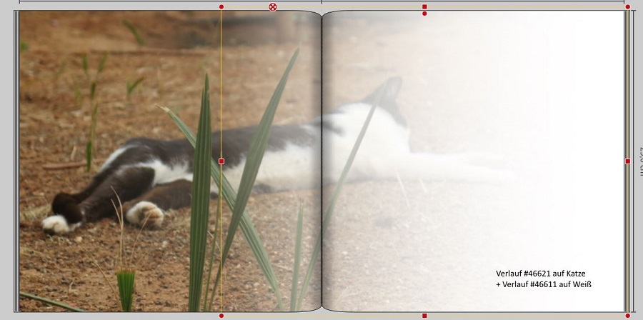 hat geschrieben: Die Gestaltungsmöglichkeiten sind vielfälig, sodass man gar keinen Tipp in eine spezielle Richtung geben kann. Ganz allgemein würde ich dir raten, das erste Fotobuch eher einfach zu halten. Du musst nicht alles, was die Software bietet, gleich im ersten Buch umsetzen. Mein erstes Buch liegt schon viele viele Jahre zurück... Ich hab hier in den Kundenbeispielen auch schon ein paar veröffentlicht. Mein letztes hab ich ganz schlicht mit weißem Hintergrund gehalten. Das hat mir echt gut gefallen (Paris - leider darf das nicht veröffentlicht werden) Aber bei diesem Buch bin ich nun total überfordert. Ich möchte die Lebensfreude, die Natur und Farben bestmöglich zeigen :) hat geschrieben: Um nur auf einer Seite eines dooppelseitigen Bildes einen Verlauf zu legen, kannst du so vorgehen, dass du auf jede Seite nur das halbe Bild legst und dann auf der einen Seite einen Verlauf drüberlegst.