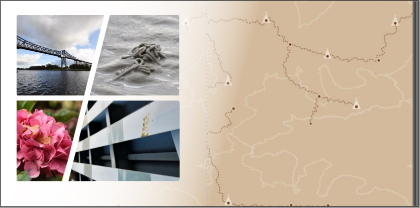 so eine Gestaltung ist nicht wirklich gut hinzukriegen, weil sich ja die Winkel der Masken mit den Abmessungen des Fotos verändern. Am einfachsten ist da noch, die Abtrennung mit Streifen zu machen, wie Bäuerin vorgeschlagen hat. Ich würde dabei für einfarbige Streifen plädieren, weil der senkrechte Streifen ja ein bisschen gedreht werden muss (ich hab es mit einem Foto probiert, Ergebnis: Was ich mir gut vorstellen könnte, wäre eine Kombi aus buntem und einfarbigem Hintergrund, z.B ein einfarbiger Hintergrund mit Verlauf hinter deiner Gestaltung und dazu ein CEWE-Hintergrund. Die minimale Breite für ein Bild/Clipart aus "Farben" ist 0,5 cm. Aber man könnte auch ein Clipart Linien nehmen. So etwa: liebe Grüße