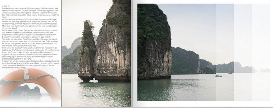 Josefia Re: 4. Dezember | Kategorie: SoftwareIch sitze gerade über einem Fotobuch einer Kreuzfahrt in diesem Jahr. Hier zeige ich mal eine Seite. Ich verwende auch gerne Transparenzen und Verläufe zur Hintergrundgestaltung.