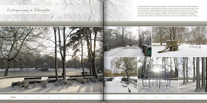 ich befasse mich gerade mit ähnlichen Problemen. Deine Covergestaltung sieht schon mal sehr elegant aus. Was den Schmutztitel betrifft, so habe ich auf dieser Seite meist eine Art Inhaltsverzeichnis erstellt. In den vergangenen Jahren habe ich den Monaten unterschiedliche Farben zugeordnet und diese mit einem kennzeichnenden kleinen Foto versehen. Auch habe ich schon mal eine Schriftwolke mit den im Jahrbuch vorkommenden Ereignissen gestaltet, die ich in einen Kartenumriss von Hamburg eingefügt habe. Dadurch hat man schon am Anfang einen Eindruck davon, was einen auf den Innenseiten erwartet. Da ich gerne immer wieder etwas Neues ausprobiere, habe ich mich für mein aktuelles Jahrbuchprojekt entschieden, die Ereignisse bzw. Bilder des Jahres nicht chronologisch, sondern thematisch zu sortieren. Dafür möchte ich dann auf jeden Fall ein Inhaltsverzeichnis mit Seitenzahlen, welches über eine Doppelseite geht, gestalten. Über Cover und Schmutztitel habe ich mir bisher noch keine Gedanken gemacht, ich schließe mich also deiner Bitte um Hilfe gerne an. Re: Jahrbuch: Cover und SchmutztitelHallo Spica,