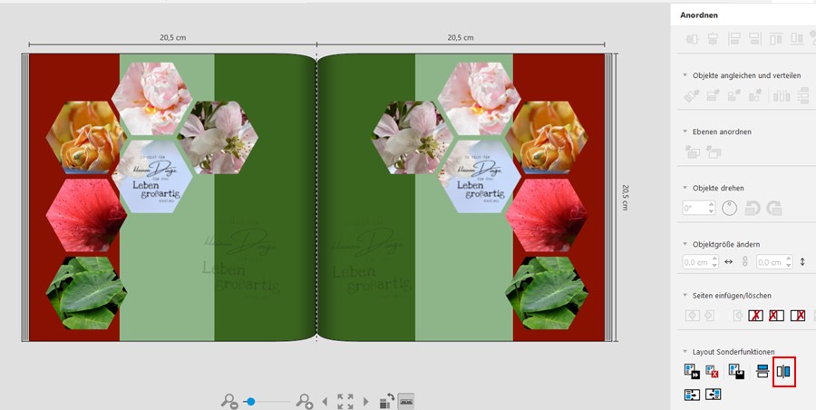 Du kannst das Layout auch auf die gegenüberliegende Seite mit diesen beiden Button spiegeln: Bei allen Spiegelungen ist es grundsätzlich egal, ob das Layout noch leer ist (also nur aus den Platzhaltern besteht) oder bereits mit Fotos befüllt wurde. Ist es das, was Du meinst? Liebe Grüße