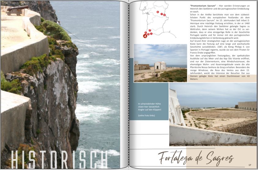 Da ich damals noch keine Ahnung von den Gestaltungsmöglichkeiten hatte, die vielen Tipps hier aus dem Forum noch nicht kannte, froh war, überhaupt mit der Software klarzukommen, sieht das Ganze aus heutiger Sicht noch SEHR laienhaft aus. Das ganze Buch noch einmal gestalten, das kommt natürlich nicht in Frage. Aber durch diese Challenge hatte ich die Idee, eine Ergänzung zu diesem FB zu gestalten. Dieses Heft wird (mit leichten Abwandlungen) auch tatsächlich in Druck gehen. Da ich mich nicht für eine einzige Doppelseite entscheiden kann, ich Vieles so wunderschön fand, wir auch Orte besucht haben, die nicht so bekannt sind und ich meine privaten FB nicht online stelle, zeige ich hier jetzt (!außer Konkurrenz!) einfach alle, die schon fertig sind. Das Layout ist dabei weitgehend identisch. Zu diesen Übersichtsseiten kommt dann für meine Version jeweils noch eine Doppelseite mit privaten Fotos. Liebe Grüße