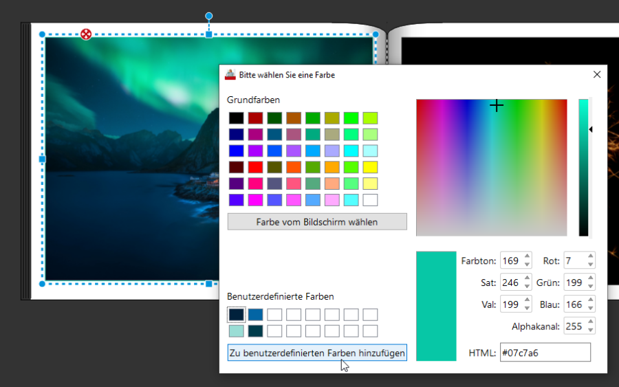 Ich habe die Farbe aus dem Foto gepickt und für die Schrift verwendet. Ebenso habe ich das Verlaufs Clipart mit den Farben aus dem Foto umgefärbt und es als Rahmen verwendet. Gruß Asiafan Liebe Grüße Asiafan
