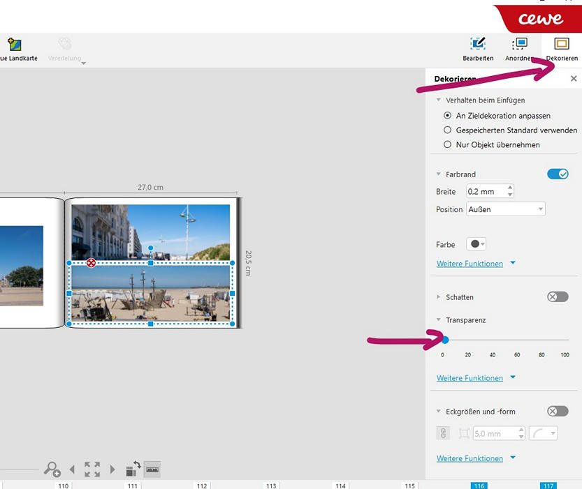 es ist schon einige Zeit her, dass ich ein Fotobuch gemacht habe. Ich hab dabei viel mit der Funktion Transparenz gearbeitet. Diese Funktion kann ich nicht mehr finden. Gibt es die nicht mehr, oder wo ist sie jetzt versteckt? Liebe Grüße, Liv