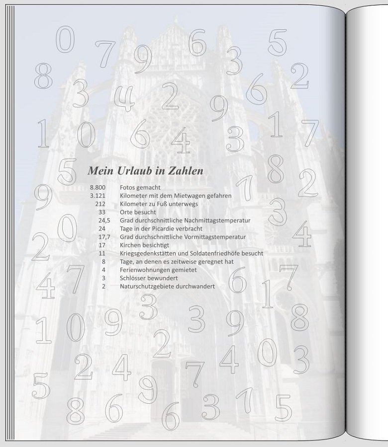 Aus meinem aktuellen mehrbändigen Projekt: Auf der ersten Seite Erläuterungen zur Region und zur aktuellen Woche. Auf der letzten Seite eine Bilanz in Zahlen.