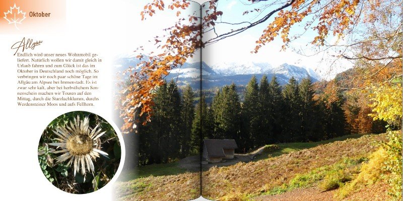 Seit Jahren finde ich das besser, als alles nur auf der Festplatte zu haben. und seit Jahren ist mein Einband in schwarz, was in meinem FB Regal die Trennung der Jahre auf einen Blick anzeigt. Ist nicht jedermanns Sache, aber über Geschmack lässt sich bekanntlich streiten. Seit ich auf das quadratische Format umgestellt habe, bekomme ich nicht mehr alle Monate unter, weshalb ich auf Halbjahres-Alben aufgeteilt habe. Am 01.01.2021 geht mein neues Album durch die Leitung in die Bestellung. Anbei ein kleiner Vorgeschmack auf meine schönen Herbstmomente.... Re: Gewinnspiel: Mein Jahr!Mit meinen Jahrbüchern hinke ich immer hinterher, da bewundere ich echt Silberdistel, Kompliment! Mein letztes fertiggestelltes Jahrbuch ist von 2016. Als ich dieses gerade geöffnet habe, hab ich lauter leere Seiten angezeigt bekommen, muss erstmal schauen, wie ich das in den Griff bekomme. Daher ein paar Seiten aus dem 1. Halbjahr 2015. Falls das nicht o.k. ist bitte löschen. Jahrbücher gestalte ich fast ausschließlich jetzt um diese Zeit um den Jahreswechsel, so gesehen, steht eigentlich das 2017er auf der to-do-Liste. Vielleicht schaffe ich es ja tatsächlich noch, hier die ersten Seiten einstellen zu können. Meine Jahrbücher sind mittlerweile gestalterisch eher sparsam, früher habe ich mehr mit Hintergründen gearbeitet und es sind hauptsächlich die Reisen und Ausflüge eines Jahres, die dort verewigt werden.