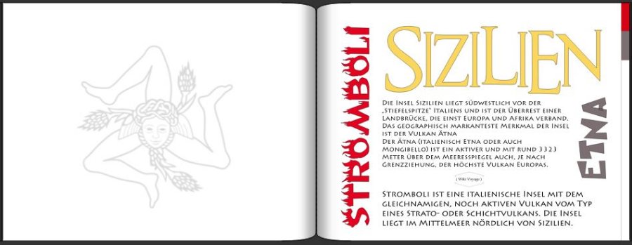 Ich wähle für Überschriften gern eine dekorative Schrift (hier: Javacom), für Sachinformationen eine einfache (hier: calibri) und die Tourstrecke habe ich in Present Normal gestaltet.