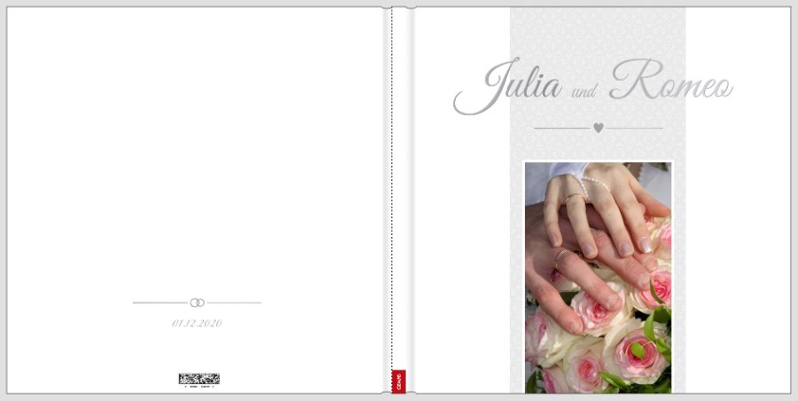 ich bewundere eure Kreationen und habe mir schon sehr viele Tipps und Tricks hier aus dem Forum geholt. Dafür möchte ich allen sehr danken. Ich gestalte aktuell das Hochzeitsbuch meines Sohnes und benötige eure Hilfe zum Cover. Mir fehlt eine zündende Idee für die Gestaltung und komme irgendwie nicht weiter. Das Fotobuch ist in XL Groß auf Fotopapier matt (Layflat). Habe schon etliche Hintergründe von Cewe und auch die Textplatzierungen ausprobiert und dabei kommt der Gedanke auf: "Das gefällt mir irgendwie nicht!" Anbei der aktuelle Stand von zwei schlichte Varianten- bin aber noch nicht überzeugt: Auf dem Originalbild (Mein Lieblingsfoto) ist das Brautpaar zu sehen und es ist in hochkant fotografiert. Da ich keine Erlaubnis habe, dies zu veröffentlichen, habe ich das Bild durch den Brautstrauß ausgetauscht. Ebenso auch die Namen habe ich herausgenommen, deshalb steht dort Name1 & Name2. Die Namen, Wordart, Herzen und Schnörkel plane ich in Silbereffekt zu gestalten. Für die restliche Gestaltung werde ich mir noch ein paar Inspirationen holen. Da habe keine großartigen Ideen. Ich hoffe ihr könnt mir etwas Hilfestellung geben bzw. eine Idee, wie man das Cover gestalten kann. Habt vielen Dank für Eure Mühe. LG Koala123 Gruß