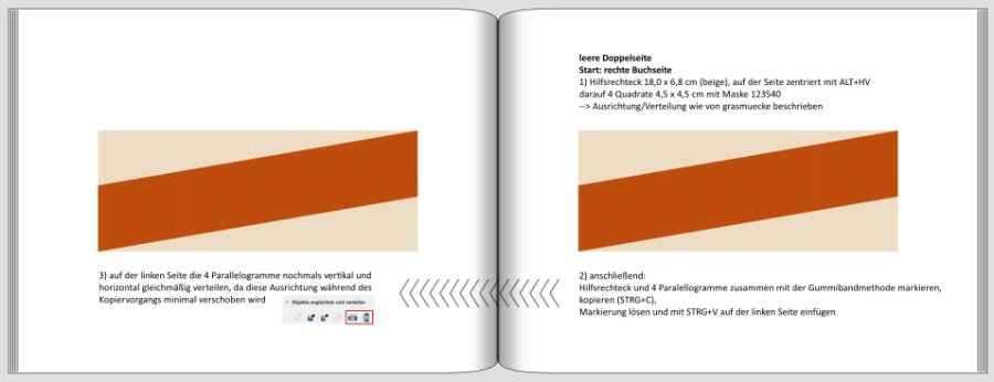 vorerst herzlichen Dank für die Anleitung, ich werde sie mir später in Ruhe anschauen. Ich hoffe du bist in der Zwischenzeit gesundheitlich wieder auf dem Damm! Also, nun zum Cover. Das mit der Rückseite hat mir auch nicht wirklich zugesagt und so habe ich weiter herumprobiert. Zum Glück habe ich jedes Mal einen screenshot gemacht, so können alle an meinen "Ergüssen" teilhaben. Ich muss schon sagen, so lange habe ich noch nie an einem Cover herumprobiert. Und je länger ich mich damit beschäftige, desto unsicherer werde ich. Also zeige ich euch meine Versuche und schaue mal, was ihr dazu sagt. Bitte aber jetzt nicht auf exakte Linien und Ausrichtung schauen, darauf habe ich jetzt nicht geachtet. Zum Teil habe ich nur die Vorderseite, dann nur die Rückseite geändert. Das heisst nicht, dass links und rechts zwingend zusammengehören. Nein ich schreibe immer in verschiedenen Braun-Orange-Tönen, an die Seite angepasst! Danke noch für euer aller Geduld! LG Zaubermaus