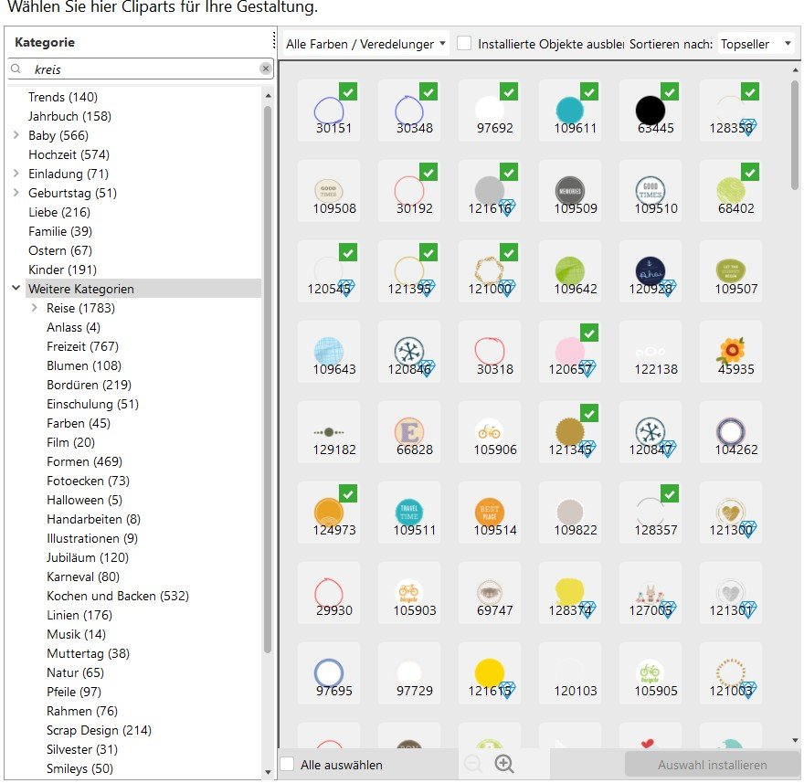 In der Version 7.1.4 ist es möglich, Cliparts, Masken und Rahmen gezielter suchen und finden zu können.