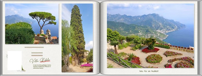 Ich stelle gerne mal ein Foto alleine auf eine Seite. Aus meiner Sicht ist es wichtig, dass das Foto immer der Hauptdarsteller bleibt. Alles andere ist wie immer Geschmackssache. Hier ein kleiner Auszug aus meinen Fotobüchern: 1. Foto als Hintergrund Da auf der rechten Seite viel Text steht, habe ich dem Foto links eine ganze Seite gewidmet. Außerdem wird die Brücke so durch nichts begrenzt. Hier ergänzt die kunstvolle Schrift (DK Rat Invested Mailbox ) das Foto. Auf der rechten Seite sind thematisch passende Fotos zu dem Foto auf der linken Seite. Zusammengehalten wird alles durch den blauen Querbalken, der der Farbe der Fotos angepasst ist. Hier wirkt die Seite durch die rote Farbe der Telefonzelle. Da braucht es keine weiteren Rahmen- oder Deko-Elemente. Ein schmaler Farbrand in dunkelgrau lässt das Foto wie ein kleines Gemälde wirken. Das grau-blaue Quadrat zieht sich als Deko-Element durch das ganze Fotobuch. Hier mit Beschriftung in Ergänzung zu einem einseitigen Foto. Hier liegt das Quadrat zum größten Teil hinter dem Foto. Es „erdet“ das zum Himmel zeigende Motiv. Hier wurde dasselbe Motiv aus 2 unterschiedlichen Blickwinkeln fotografiert. Durch die Anordnung hoch und quer kommt Spannung rein. Hier wird der Text durch eine Rahmen-Box vom Foto getrennt. Die „Gänsefüßchen“ sind als grafisches Element dabei. Hier ist das Foto durch mehrere Elemente angereichert: Verlaufs-Rahmen, Überschrift, Textbox und Streifen mit Metallic-Effekt passen zu dem Wiener Flair. Das Foto bekommt hier viel weißen Freiraum. Es hat einen CEWE Verlaufs-Rahmen. Das Foto ist oben, rechts und unten über den Fotobuchrand gezogen. Im freien Raum links steht die Beschriftung Der Verlaufs-Rahmen ist eine gute Ergänzung zu dem „wilden“ Motiv. Die unterschiedliche Aufbereitung der Seiten lassen keine Monotonie aufkommen. Hier verbindet der dunkelgraue Streifen die Motive. phili Re: Ein Foto schön in Szene gesetzt@phili: