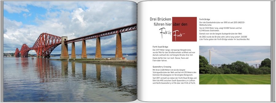Ich stelle gerne mal ein Foto alleine auf eine Seite. Aus meiner Sicht ist es wichtig, dass das Foto immer der Hauptdarsteller bleibt. Alles andere ist wie immer Geschmackssache. Hier ein kleiner Auszug aus meinen Fotobüchern: 1. Foto als Hintergrund Da auf der rechten Seite viel Text steht, habe ich dem Foto links eine ganze Seite gewidmet. Außerdem wird die Brücke so durch nichts begrenzt. Hier ergänzt die kunstvolle Schrift (DK Rat Invested Mailbox ) das Foto. Auf der rechten Seite sind thematisch passende Fotos zu dem Foto auf der linken Seite. Zusammengehalten wird alles durch den blauen Querbalken, der der Farbe der Fotos angepasst ist. Hier wirkt die Seite durch die rote Farbe der Telefonzelle. Da braucht es keine weiteren Rahmen- oder Deko-Elemente. Ein schmaler Farbrand in dunkelgrau lässt das Foto wie ein kleines Gemälde wirken. Das grau-blaue Quadrat zieht sich als Deko-Element durch das ganze Fotobuch. Hier mit Beschriftung in Ergänzung zu einem einseitigen Foto. Hier liegt das Quadrat zum größten Teil hinter dem Foto. Es „erdet“ das zum Himmel zeigende Motiv. Hier wurde dasselbe Motiv aus 2 unterschiedlichen Blickwinkeln fotografiert. Durch die Anordnung hoch und quer kommt Spannung rein. Hier wird der Text durch eine Rahmen-Box vom Foto getrennt. Die „Gänsefüßchen“ sind als grafisches Element dabei. Hier ist das Foto durch mehrere Elemente angereichert: Verlaufs-Rahmen, Überschrift, Textbox und Streifen mit Metallic-Effekt passen zu dem Wiener Flair. Das Foto bekommt hier viel weißen Freiraum. Es hat einen CEWE Verlaufs-Rahmen. Das Foto ist oben, rechts und unten über den Fotobuchrand gezogen. Im freien Raum links steht die Beschriftung Der Verlaufs-Rahmen ist eine gute Ergänzung zu dem „wilden“ Motiv. Die unterschiedliche Aufbereitung der Seiten lassen keine Monotonie aufkommen. Hier verbindet der dunkelgraue Streifen die Motive. phili Re: Ein Foto schön in Szene gesetzt@phili: