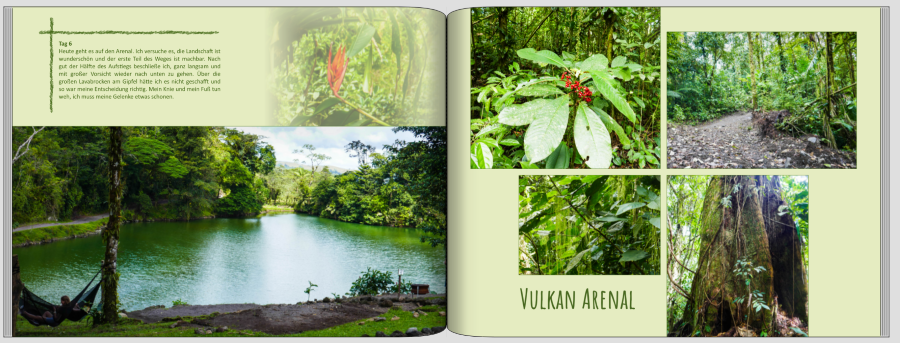 Danke schon mal.deine eingestellten Seiten sind leider so klein, dass ich Probleme damit habe, konkrete Hinweise zu geben. Was ich mich beim Überfliegen allerdings gefragt habe ist, warum es nur zwei Seiten gibt mit runden Elementen. Hat das einen besonderen Grund, ansonsten denke ich, dass das nicht unbedingt nötig ist. Dann ist da noch eine Seite mit 3 Fotos mit abgeschrägten Ecken. So etwas habe ich auf keiner anderen deiner Seiten gesehen, und auch da frage mich, ob das Sinn macht. Dass du mit dem Cover nicht richtig zufrieden bist, kann ich gut nachvollziehen. Du stellst dir die Frage, ob die Frage nicht ein zu starker Kontrast zur Natur ist. Es ist nicht die Flagge, es sind die Farben, die das Cover nicht harmonisch erscheinen lassen. Vermutlich würde ich mich auf das Foto beschränken. Lieber Gruß Traumfänger Ich habe ab und zu mal runde Elemente, wenn die Motive passen, auf knapp 146 Seiten ca. 6 x, die eckigen Elemente habe ich auch noch öfter, allerdings anders angeordnet, da wirken sie besser, aber sie müssen auch nicht sein, ich hab sie inzwischen auf einer Seite geändert, da war ich mir eh nicht sicher. Ich habe versucht, kein Gestaltungselement alleine zu lassen, irgendwo im Buch gibt es immer eine Wiederholung, auch bei den Transparenzen und den Freistellungen. Die Farben und das Blocking der Flagge kann ich leider nicht ändern Ich hänge mal ein paar größere Screenshots von einigen Seiten an. Re: Ich bräuchte auch mal wieder HilfeUnd wenn Du die Flagge als Verzierung statt als Hintergrund nutzt?