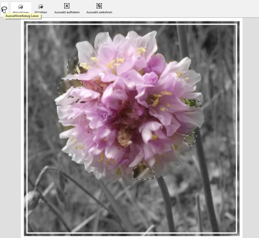 Hallo Anika,Ja, genau und mit dem kleinen Lasso oben, könnte man dann auch nochmal nacharbeiten. SW.png Ich umrande mir die Flächen damit und wende dann nochmal den Effekt an. So sieht es dann aus. SW fertig.png Liebe Grüße Anika mit dem Lasso habe ich auch schon Effekte ausprobiert. Mein Problem dabei ist, dass man die Maus nicht zwischendurch absetzen und dadurch auch nicht korrigieren kann. Das bedeutet, wenn ich beim Arbeiten die Maus versehentlich loslasse oder wenn ich die angepeilte Linie nicht richtig getroffen habe, muss ich wieder von vorn anfangen. Deshalb arbeite ich lieber mit einem externen Programm (z.B. Gimp), wo ich zwischendurch absetzen kann und eine verunglückte Linie bis zum vorhergehenden Absetzen mit StrgZ rückgängig zu machen ist, d.h. man muss nicht wieder von vorn anfangen. Mein Wunsch an die Entwickler ist, dass man diese Funktion in die Software einbaut. Es wäre schön, wenn du den Wunsch an die entsprechende Stelle weiterleitest. Lieber Gruß Traumfänger Re: Mein Lieblingseffekt und welcher ist Deiner?Hallo Traumfänger,