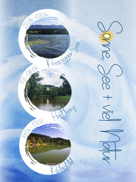 Hallo Anika,Habt ihr noch Änderungsvorschläge ? Liebe Grüße Anika hier mal mein erster Eindruck von Deinen gezeigten Seiten. vielleicht kannst Du noch etwas basteln und die Fotos anders anordnen! Ich persönlich mag es ja auch etwas bunter. Mir hat die Gestaltung Bild 7 von 7 von den Farben (blau und vorallem das Lila) und den Verläufen her besser gefallen. Egal wie Du Dich entscheidest. Auf jeden Fall würde ich das Foto mit den Bäumen auf der rechten Seite ganz weg lassen und beide Fotos in der gleichen Größe. Evtl. sogar den Camper als oberes Foto. linke Seite: Ankommen oder Camping über dem runden Clipart oben setzen und das Foto wie 2 von 7 rechteckig und nur etwas kleiner. Außerdem würde ich das Clipart nicht ausgefranzt, sondern gleich gestalten. Seite 1 von 7: Wie wäre es, wenn Du die Stationen unter die Fotos setzen würdest und Sonne, See und viel Natur waagrecht versetzt auf die Seite. Aber dies ist mein Geschmack. Dir muss es gefallen. Liebe Grüße Asiafan
