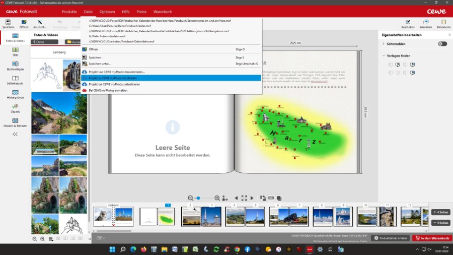 Hallo Spica, das Harzbuch werde ich wohl nicht drucken lassen, von daher ist es in den Kundenbeispielen nicht zu finden. Bei Cewe myPhotos ist es aber noch zu sehen:https://www.cewe-myphotos.com/webapp/#/ ... 6a6b595528 HARZliche Grüße Hans-Jürgen Re: neues Buch ist in ArbeitIch danke Dir für die Verlinkung. Das ist wirklich ein sehr schönes und inspirierendes Buch. Schade, dass Du es nicht veröffentlichst.