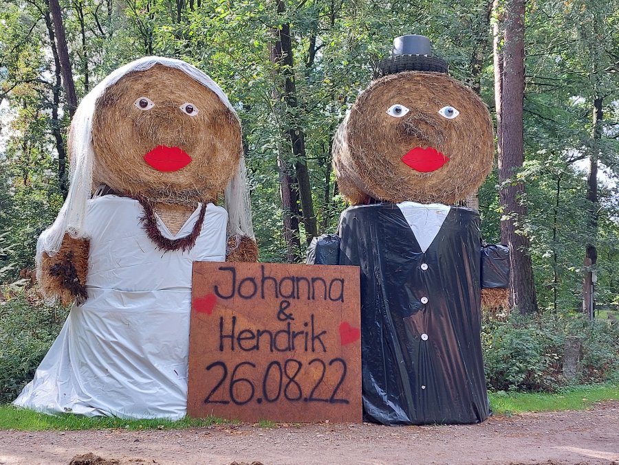 Hanggeschriebene Hochzeitsanzeige am Wegesrand