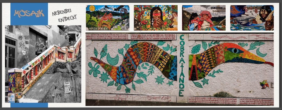 Bei der Mosaik-Seite würde ich ebenfalls alle Textflächen wegzoomen, sodass nur die Bildmotive zur Geltung kommen. Teilweise sind die Texte ohnehin angeschnitten, sodass ich sie für entbehrlich halte. Transparenzen und Verläufe würde ich entfernen sowie den oberen 4 kleinen Bildern einen dezenten Rahmen geben, damit sie sich von dem großen Motiv darunter abheben. Auf das rechte untere Mosaik würde ich im Buch gänzlich verzichten, da es eh´ irgendwie übriggeblieben auf der Seite wirkt. Die Farbe/sw-Kombi bei der Treppe finde ich toll! Das würde ich unbedingt lassen. Für beide Seiten: Weniger Schrift verwenden. je 1x "Mosaik" und "Graffiti" reicht. Ich würde mich hier für die dickere, gelbe Schrift entscheiden. Die Graffiti-Seite: Da würde ich persönlich wohl nochmals 2 daraus machen oder ausdünnen. Wahrscheinlich eher letzteres. Mir gefallen Wildkatze, Trump-Mauer und die beiden schräg angeschnittenen Bilder am besten. Mit diesen 4 würde ich die Gestaltung hier nochmals neu angehen und die anderen Bilder weglassen. Und auch hier wieder Transparenzen, Verläufe und schräge Ecken weglassen. Graffiti und Mosaike leben vor allem von den Farben. Warum also diese wegnehmen? Liebe Grüße
