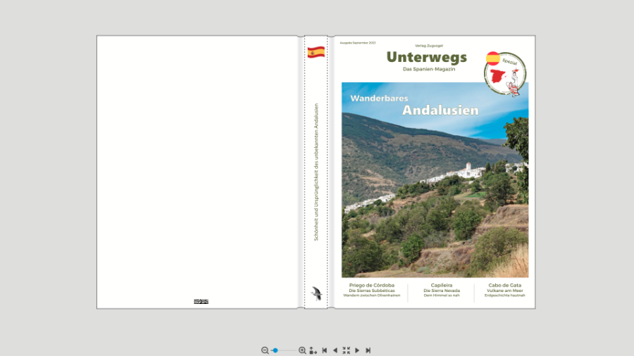 auch ich melde mich mal wieder und bitte um Hilfe. Mein Andalusien-Buch soll ja im A4-Hochformat gestaltet werden und ich habe mir als Cover einen Magazin-Stil überlegt. Allerdings bin ich nun ratlos, wo ich am besten die "Inhaltsangaben" platziere und welche Schriftart ich für "En Camino" (heißt unterwegs und passt deshalb zur sonstigen Reihe der Zugvögel unterwegs) nehmen soll. den Titel habe ich in Powerpoint mit einem Farbverlauf analog der spanischen Flagge gestaltet. Und ja, es soll wanderbar und nicht wunderbar heißen...Danke Euch! Re: Cover WanderreiseLiebe Reisetante,