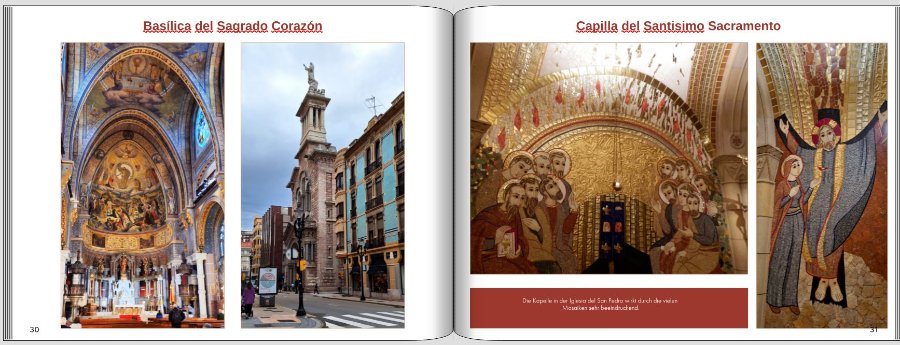 Danke, die Fotos habe ich getauscht. ...Was ich nciht verstehe, wie ist dies gemeint mit das rechte Bild in derselben Entfernung wie das obere?Die Abstände zwischen dem farbigen Clipart und den Bildern würde ich gleich groß machen, das rechte Bild in derselben Entfernung wie das obere. Lieber Gruß Traumfänger Text: Sagt man den vielen Mosaike oder Mosaiken?? Die Kapelle in der Iglesia del San Pedro wirkt durch die vielen Mosaiken sehr beeindruckend. Liebe Grüße Asiafan