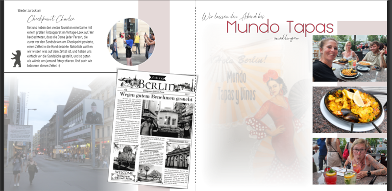 Ich bin grad bei meinem neuen Fotobuchvon unserer Berlinreise im August. Ich denke die ganze Zeit über den Buchtitel nach. Anfangs dachte ich an : "Sommertage in Berlin" oder "Unterwegs in Berlin". Wir haben die Stadt so wahrgenommen, als würde sich hier alles um die Mauer drehen, überall Denkmähler,Infotafeln über die Mauer/Mauerfall/Fluchtversuche etc... Daher habe ich überlegt, ob ich den Titel vielleicht irgendwie damit verbinden sollte. Also z.B. "Eine wiedervereinigte Stadt" oder so ähnlich. Ihr habt immer so tolle Ideen! Vielleicht fällt jemanden etwas passendes ein! Liebe Grüße,