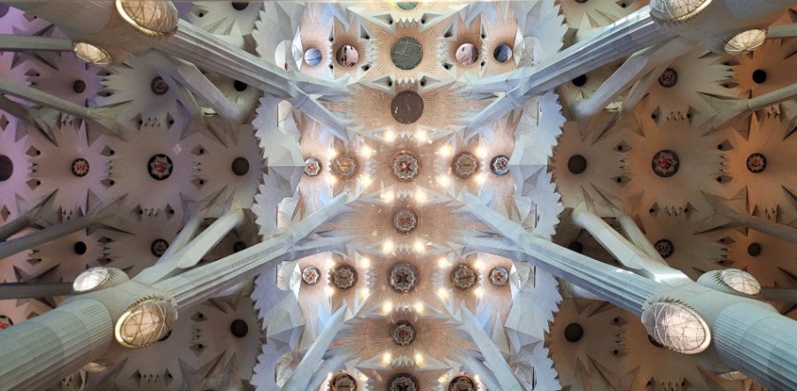 Da ich gerade meine Fotos aus Barcelona sortiere, hier ein Bild aus der Sagrada Familia. Die Decke der Kirche ist fantastisch, ich hatte schon Nackenschmerzen. Dann entdeckte ich einen Spiegel, da kann man als Vogel fotografieren und bekommt das Bild aus der Froschperspektive.