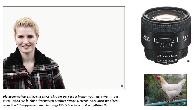 Teleobjektive - Portrait & mehr (FS03-02)Viele Zooms von D-SLR-Kameras und viele eingebaute Zooms von Kompakt- und All-in-One-Kameras erreichen oder beinhalten Brennweiten um 85 mm . Sie gehören zu jenen, die man landläufig als „kurze Tele-“ oder „Porträtbrennweiten“ bezeichnet. Außerdem findet man eine Reihe von Festbrennweiten um 80 mm, die sich von entsprechenden Zooms durch höhere Lichtstärke absetzen.