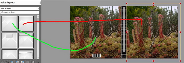 Will ich nun ein kleineres Bild mittig zwischen diesem Knick und der Außenkante habe, dann setze ich das Bild mittig und verschiebe es um 4mm oder 8x rechte Pfeiltaste, dann klappt es auch. Der Abstand zwischen Knick und Falz ist, zumindest bei mir, immer 8mm. Alternativ einen 4mm Raster setzen und das Bild einen Raster nach außen verschieben. (Bei mir rastet es leider nicht ein). Aber wenn ich mir so die Kundenbeispiele ansehe, benutzen die meisten Leute ein ganzseitiges Bild oder vorgefertigte Layouts. Aber vielleicht könnte man in einer nächsten Version den Falzknick strichliert einfügen, für die ganz Pingeligen. :mrgreen: Re: Layouts für CoverAlso ich weiß nicht haben wir unterschiedliche Versionen?
