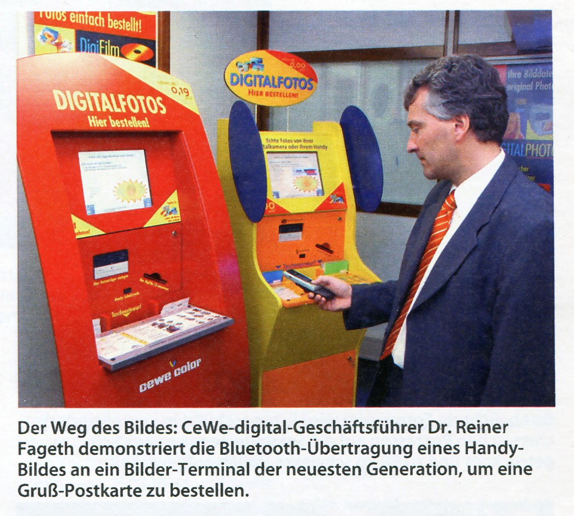 die Geräte sind grundsätzlich rot - sind die Geräte zweifarbig, so ist dies ein Hinweis auf die weitere Möglichkeit des Sofortdrucks. Sind Sie einfarbig, so sind nur Bestellungen (Labor) möglich. Um jetzt mal etwas aus dem Nähkästchen zu plaudern.... Mitte der 90er wurde die erste Digitalstation von uns entwickelt. Sozusagen der Vorgänger der heutigen Geräte. Unser Firmengründer Senator Heinz Neumüller stellte das erste Gerät 1997 auf der Hauptversammlung vor. Mit diesem Schritt offerierten wir dem Fotofachhandel neue Dienstleistungswege. Im Herbst 1997 wurde die erste digitale Annahmestelle in einem Fotofachgeschäft integriert und die Bestellung über das Web wurde möglich. Auf dem Foto befinden sich von links nach rechts, Wulf Schmidt-Sacht, Senator Heinz Neumüller und unser gegenwärtiger Vorstandsvorsitzender Dr. Rolf Hollander. Ich liebe dieses Bild! Alle sind stolz wie Bolle :-) Gemeinsam mit der Firma Agfa stellten wir 2001 die neuste Entwicklung der Digitalstation vor. Erstmals im roten Gewand und in kompakter Form. Damals hieß das Gerät "DigiFilm Maker". 2002 wurde das Produktsortiment der Geräte erweitert. Auf dem Foto befinden sich Michael Korn (Agfa) und Wulf D. Schmidt-Sacht (CeWe Color) 2003 der TXL mit erweiterter Bestellfunktion und großem Touch-Display. 2013 Der MXL mit Möbel und schickem Widescreen :-) Sylke Re: Einfach, schnell und direkt vor Ort - SofortfotosVielen Dank für den ausführlichen Bericht, war sehr interessant!