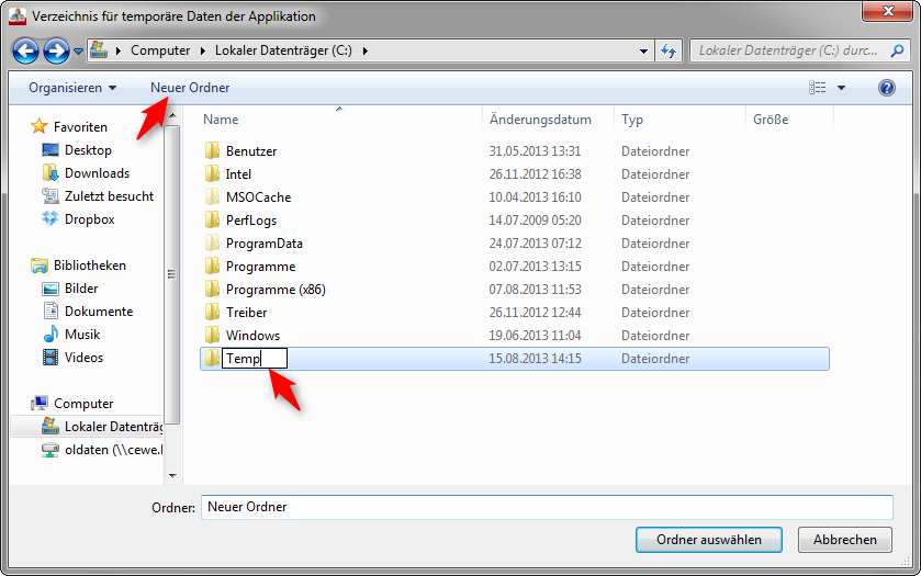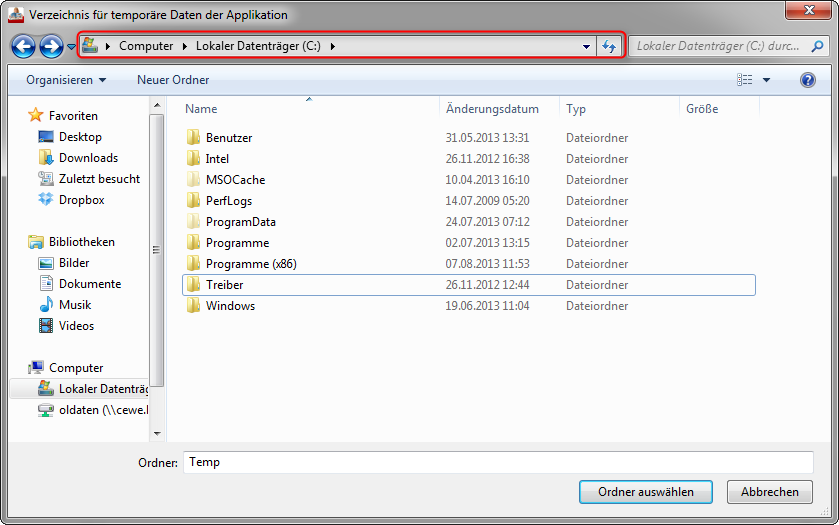 Ihre Fotos sind kein Grund für die Fehlermeldung. Danke, dass Sie mir die Daten zur Verfügung gestellt haben, so konnte ich diese Möglichkeit testen und ausschließen. Ich habe die Vermutung, dass die Software keine Daten an dem angegebenen Speicherorten schreiben kann. Daher wäre mein Vorschlag an Sie, die Pfade in den Optionen zu ändern. In den Optionen unter System finden Sie den Pfad für temporäre Daten. Diesen würde ich Sie bitten zu ändern. Dafür gehen Sie auf Durchsuchen und legen einen neuen Ordner fest, in dem die Daten gespeichert werden sollen. Beispiel: Wählen Sie Ihre Festplatte C: aus. Liebe Grüße